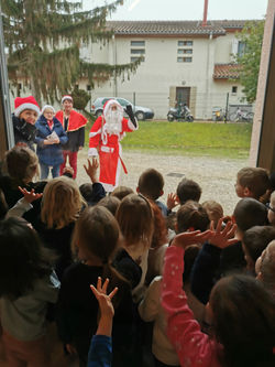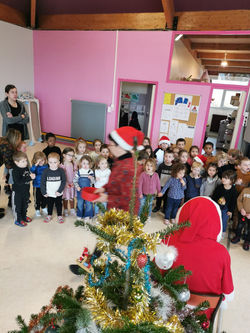 Il est ensuite venu dans notre classe nous apporter des cadeaux : un lit pour nos poupons, le jeu "touche et trouve", du petit mobilier pour notre maison de poupée ainsi que des déguisements pour les 3 classes.